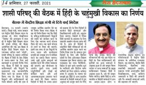 राजनीति केंद्रीय हिंदी शिक्षण मंडल की शासी परिषद् में हिंदी के लिए महत्त्वपूर्ण निर्णय March 1, 2021 / March 1, 2021 by प्रवक्ता ब्यूरो | Leave a Comment माननीय शिक्षा मंत्री डॉ. रमेश पोखरियाल ‘निशंक’ जी की अध्यक्षता में 19 जनवरी, 2021 को केंद्रीय हिंदी शिक्षण मंडल की शासी परिषद् की बैठक आयोजित की गई, जिसमें हिंदी के देश-विदेश में प्रचार-प्रसार के लिए कई महत्त्वपूर्ण व दूरगामी निर्णय लिए गए। इसमें प्रमुख हैं:- बैठक में हिंदी के प्रमुख साहित्यकारों और विद्वानों के सहायतार्थ […] Read more »