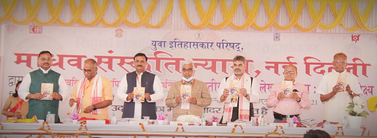 माधव संस्कृति न्यास, नई दिल्ली और सिद्धार्थ विवि. सिद्धार्थनगर द्वारा आयोजित दो दिवसीय राष्ट्रीय संगोष्ठी के उद्घाटन सत्र में डॉ. सौरभ मालवीय की लिखित पुस्तक भारत बोध समेत आठ पुस्तकों का लोकार्पण हुआ।