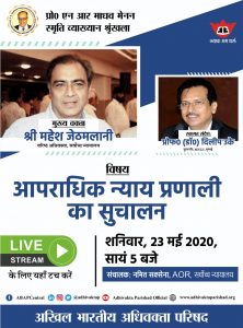 क़ानून वरिष्ठ अधिवक्ता महेश जेठमलानी और प्रोफेसर (डॉ.) दिलीप उके ‘प्रो. एन. आर. माधव मेनन स्मृति व्याख्यान श्रृंखला’ के अंतर्गत ‘आपराधिक न्याय प्रणाली का सुचालन’ विषय पर देगें व्याख्यान May 20, 2020 / May 20, 2020 by प्रवक्ता ब्यूरो | Leave a Comment अखिल भारतीय अधिवक्ता परिषद (ABAP) द्वारा आयोजित ऑनलाइन व्याख्यान श्रृंखला “प्रो. एन. आर. माधव मेनन स्मृति व्याख्यान श्रृंखला’ के अंतर्गत सर्वोच्च न्यायालय के वरिष्ठ अधिवक्ता महेश जेठमलानी और एम.एन.एल.यू. मुंबई के कुलपति, प्रोफेसर (डॉ.) दिलीप उके ‘आपराधिक न्याय प्रणाली का सुचालन’ (Making Our Criminal Justice System Work) विषय पर अपने विचार साझा करेंगे। यह स्मृति […] Read more » ABAP Akhil Bharatiya Adhivakta Parishad Making Our Criminal Justice System Work अखिल भारतीय अधिवक्ता परिषद अधिवक्ता परिषद आपराधिक न्याय प्रणाली का सुचालन ऑनलाइन व्याख्यान श्रृंखला दत्तोपंत ठेंगडी दत्तोपंत ठेंगडी व्याख्यान श्रृंखला दिलीप उके प्रो. एन. आर. माधव मेनन स्मृति व्याख्यान श्रृंखला महेश जेठमलानी वरिष्ठ अधिवक्ता व्याख्यान श्रृंखला