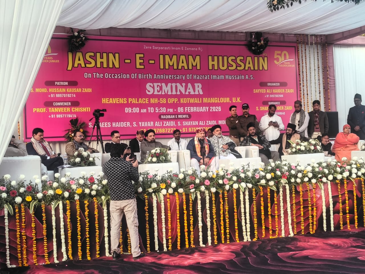 हरिद्वार जनपद के मंगलौर स्थित हेवन्स पैलेस में जश्न-ए-इमाम हुसैन (अ.स.) स्वर्ण जयंती संगोष्ठी का द्वितीय सत्र अत्यंत गरिमामय, वैचारिक और प्रेरक वातावरण में संपन्न हुआ। सत्र की निज़ामत नजीब इलाहाबादी साहब ने की। कार्यक्रम में देश के प्रतिष्ठित वक्ताओं, राष्ट्रीय विचारकों, शिक्षाविदों और धर्मगुरुओं ने कर्बला के सार्वभौमिक संदेश—सत्य, न्याय, बलिदान, एकता और इंसानियत—पर अपने विचार रखते हुए इसे समकालीन भारत की सबसे बड़ी आवश्यकता बताया।