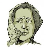 झाड़ू, कलछू, बेलना, आलू और कटार।